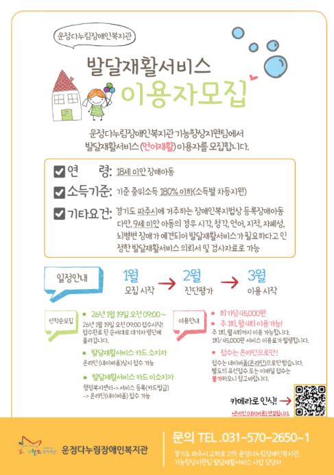 | ▲ 파주시 운정다누림장애인복지관, 발달재활서비스(언어재활) 이용자 모집 |