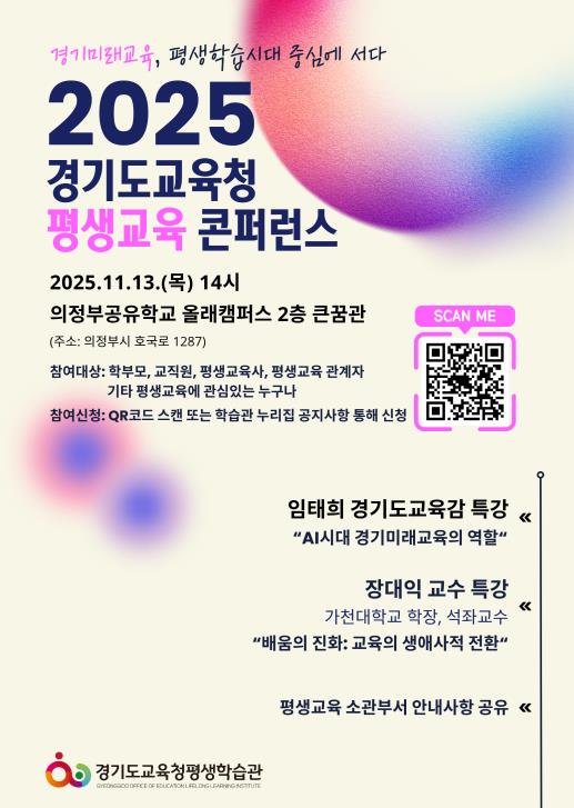 의정부공유학교 올래캠퍼스 큰꿈관에서 열리는 이번 행사는 도내 평생교육사의 전문성을 강화하고 인공지능 시대를 맞아 경기평생교육의 발전방향을 모색하기 위해 마련됐다.