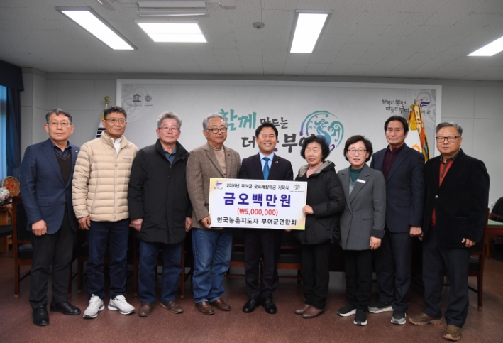 [무한뉴스=정민정 기자] 부여군농촌지도자회(회장 임병우)는 부여군청을 방문하여 인재 육성을 위한 장학금 5백만 원을 (재)부여군굿뜨래장학회에 기탁했다고 13일 밝혔다.