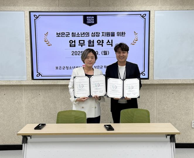 앞서 9월 24일에는 보은군 교육발전협의회와도 업무협약을 체결했다. 양 기관은 협약을 계기로 청소년 활동 활성화를 위해 상호 협력하고, 지역 교육 여건 개선과 청소년 성장 기반 강화를 위한 다양한 공동사업을 추진할 계획이다.
