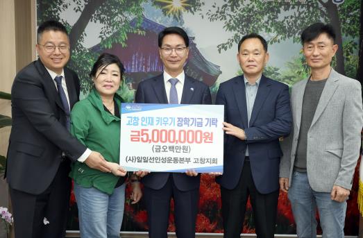 | ▲ 일일선인성운동본부 고창지회, 지역인재육성 장학금 500만원 기탁 |