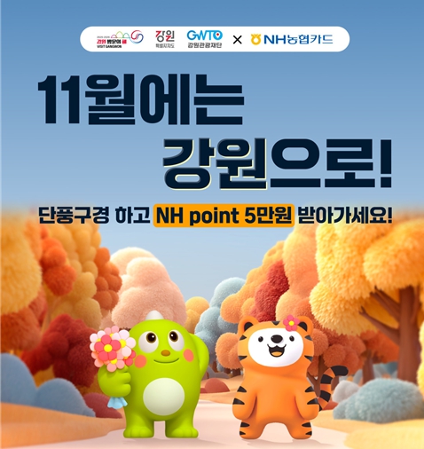 [무한뉴스=정민정 기자] 강원특별자치도와 강원관광재단은 NH농협카드와 함께‘강원 관광소비 활성화 캠페인’을 11월 12일부터 12월 3일까지 추진한다.