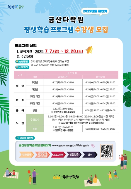 신청은 금산다락원 누리집·금산군평생학습포털을 통해 할 수 있다.