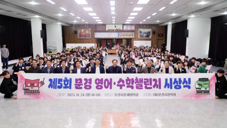 [무한뉴스=최진수 기자] (재)문경시장학회는 지난 24일 문경시청 대회의실에서 수상자와 학부모 등 150여 명이 참석한 가운데 글로벌 인재 양성을 위해 실시한 제5회 문경 영어·수학 챌린지 시상식을 열었다.