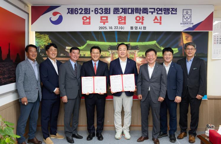 [무한뉴스=최진수 기자] 통영시는 지난 22일 2026~2027년'제62회·63회 춘계대학축구연맹전'유치 성공에 따른 업무협약을 체결하고 성공적인 대회 운영을 위해 상호 간 적극 협력하기로 밝혔다.