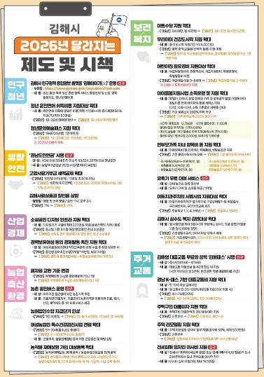 김해시 관계자는 “2026년은 일상에서 변화를 직접 피부로 느낄 수 있는 한 해가 될 것”이라며 “준비한 정책들이 시민의 행복과 직결될 수 있도록 세심하게 챙기겠다”고 밝혔다.