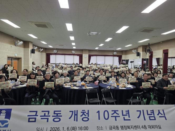 [무한뉴스=양현명 기자] 2026년 개청 10주년을 맞은 권선구 금곡동은 지난 6일 지역구 의원과 주민 등 100여 명이 참석한 가운데 주민자치회 및 통장협의회와 함께 10주년 기념행사를 개최했다.