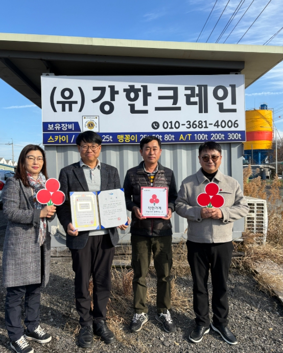 [무한뉴스=정민정 기자] 나운2동 행정복지센터는 착한가게에 신규 가입한 (유)강한크레인(대표 강신재)을 방문하여 착한가게 현판을 전달했다고 13일 밝혔다.