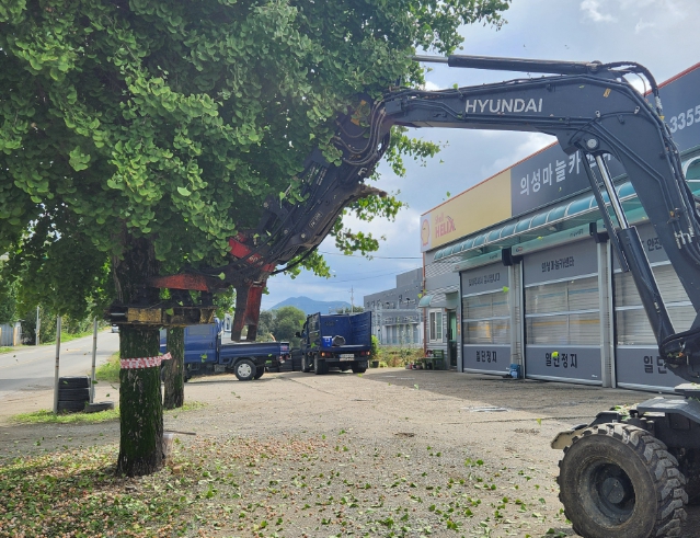 [무한뉴스=최진수 기자] 의성군은 지난 19일 은행나무에서 떨어지는 열매로 인한 주민 불편을 해소하기 위해 진동 수확기를 활용한 시범 채취 작업을 실시했다.