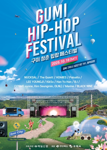 [무한뉴스=최진수 기자] 구미시는 오는 10월 18일 동락공원에서 청춘들의 열정과 힙합 음악이 어우러지는 '2025 구미청춘힙합페스티벌'을 개최한다. 이번 공연은 오후 3시 30분부터 밤 10시까지 진행되며, 전석 무료(스탠딩존)로 선착순 입장할 수 있다.