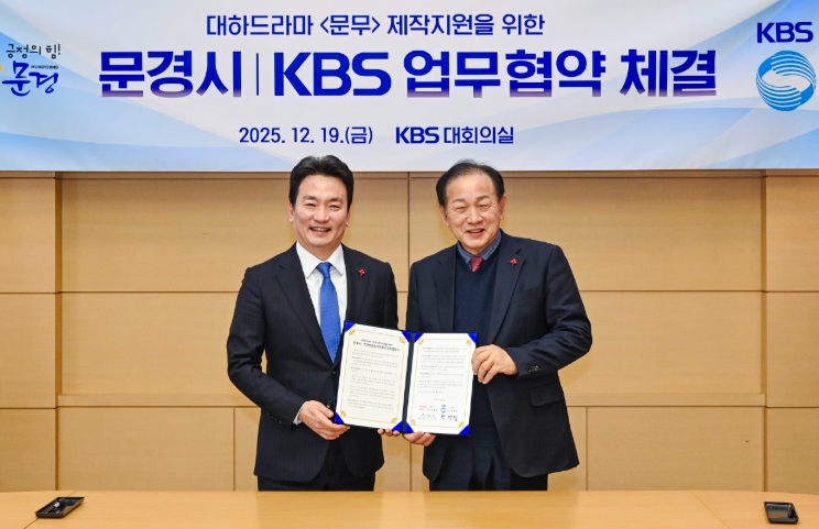 [무한뉴스=최진수 기자] 문경시와 KBS는 지난 19일 KBS홀에서 사극 ‘문무’ 제작 지원 및 촬영 협력을 위해 신현국 문경시장과 박장범 KBS 사장이 업무협약을 체결했다.