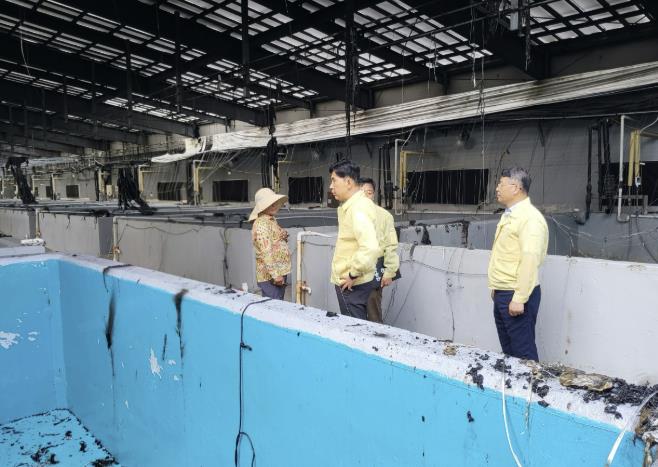 | ▲ 보성군 꼬막 등 종묘배양장 화재, 인명 피해 없이 진화 완료_김철우 보성군수가 현장에서 피해 상황을 점검하고 있다. |