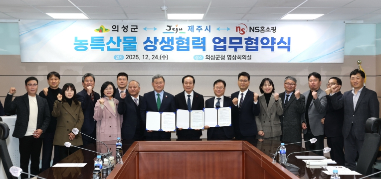 [무한뉴스=최진수 기자] 의성군은 지난 24일 제주시 및 ㈜NS쇼핑(대표이사 조항목)과 우수 농특산물 유통 확대와 판로 다각화를 위한 상생협력 업무협약을 체결했다고 밝혔다.