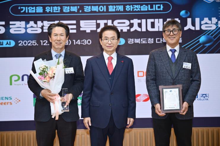 [무한뉴스=최진수 기자] 김천1일반산업단지에 입주한 ㈜디알젬(대표 박정병)과 ㈜대림프라콘(대표 김동수)이 지난 19일 경상북도청에서 열린 '2025년 경북 투자유치대상'시상식에서 우수상과 특별상을 수상했다.