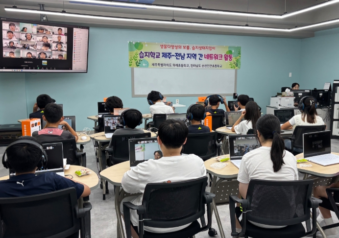 [무한뉴스=정민정 기자] 제주도교육청 하례초등학교는 9월 30일 전남 순천인안초등학교와 함께 비대면 화상회의 플랫폼(ZOOM)을 활용해 생태관광을 주제로 공동수업을 진행했다.