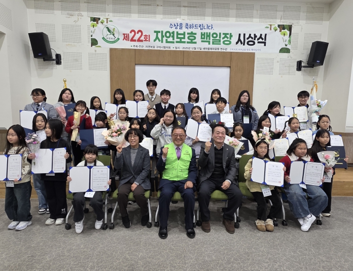 [무한뉴스=최진수 기자] 구미시는 12월 17일 새마을운동테마공원 연수관에서 자연보호구미시협의회(회장 오석우) 주관으로 제22회 자연보호 백일장 시상식을 개최했다.