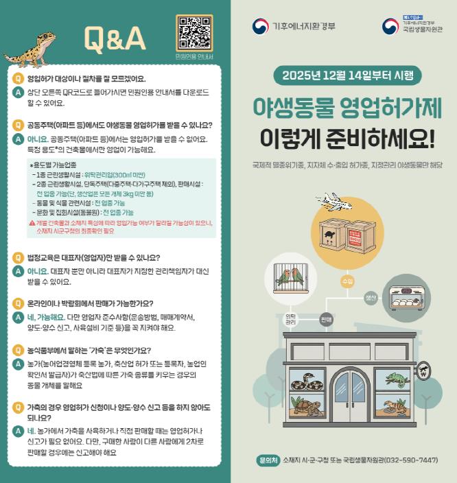 ‘야생생물 보호 및 관리에 관한 법률’ 개정에 따른 이번 시행은 야생동물의 무분별한 유통으로 인한 인수공통감염병 발생을 예방하고 사육 과정에서 유기되는 외래 야생동물로 인한 생태계 교란을 사전에 방지하기 위해 마련됐다.
