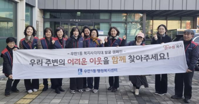 [무한뉴스=양현명 기자] 수원시 팔달구 우만1동은 지난 11일 동절기를 맞아 지역 내 복지사각지대 해소를 위한 동절기 복지사각지대 발굴 캠페인을 실시했다.