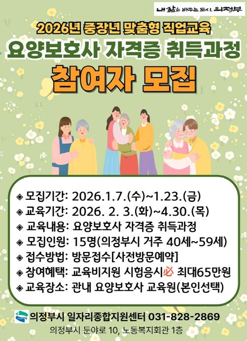 | ▲ 의정부시, 요양보호사 자격증 취득 과정 참여자 모집 |