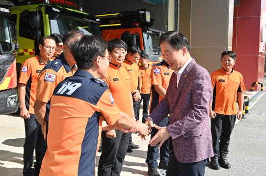이번 방문에는 지역구 도의원과 지역 교육장이 함께해 뜻을 더했으며, 특히 소방서 5곳에는 국가보훈부 성금으로 위문금이 지원돼 지난 3월 산불 진화에 헌신한 소방관들의 노고를 위로하고 감사의 뜻을 전했다.