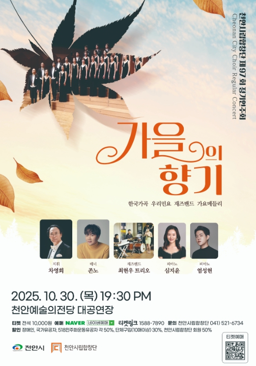 [무한뉴스=정민정 기자] 천안시립합창단이 오는 30일 오후 7시 30분 천안예술의전당 대공연장에서 제97회 정기연주회 ‘가을의 향기’를 개최한다.