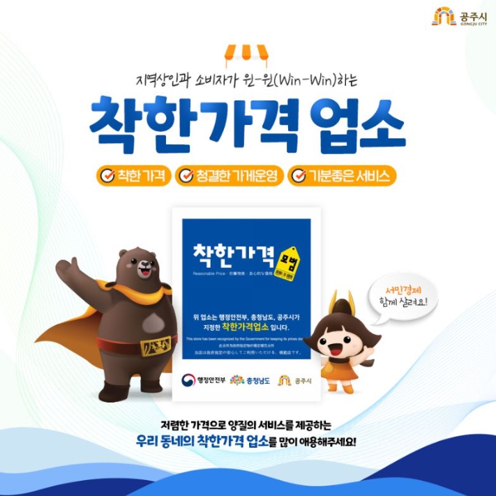 [무한뉴스=정민정 기자] 공주시는 저렴한 가격으로 지역 물가 안정에 기여하고 있는 ‘착한가격업소’를 오는 24일까지 공개 모집한다고 밝혔다.
