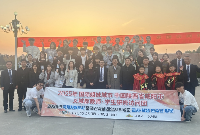 [무한뉴스=최진수 기자] 의성군은 10월 27일부터 31일까지(4박 5일) 의성교육지원청 전영배 교육지원과장을 단장으로 하는 교류단 25명(중·고등학생 및 인솔자 등)이 국제자매결연 도시인 중국 셴양시(咸陽市)를 방문해 다양한 문화체험 활동을 진행하고 있다고 밝혔다.