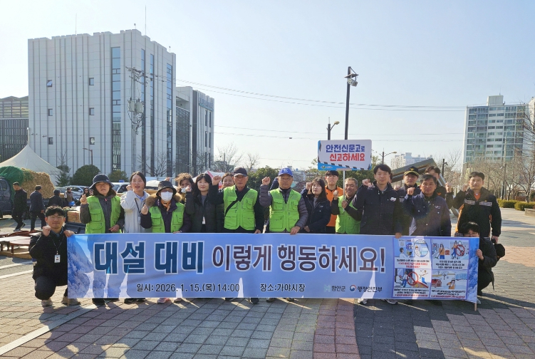 [무한뉴스=최진수 기자] 함안군은 지난 15일 가야시장에서 ‘대설 대비 생활 속 안전행동요령’을 주제로 1월 안전점검의 날 캠페인을 실시했다고 밝혔다.