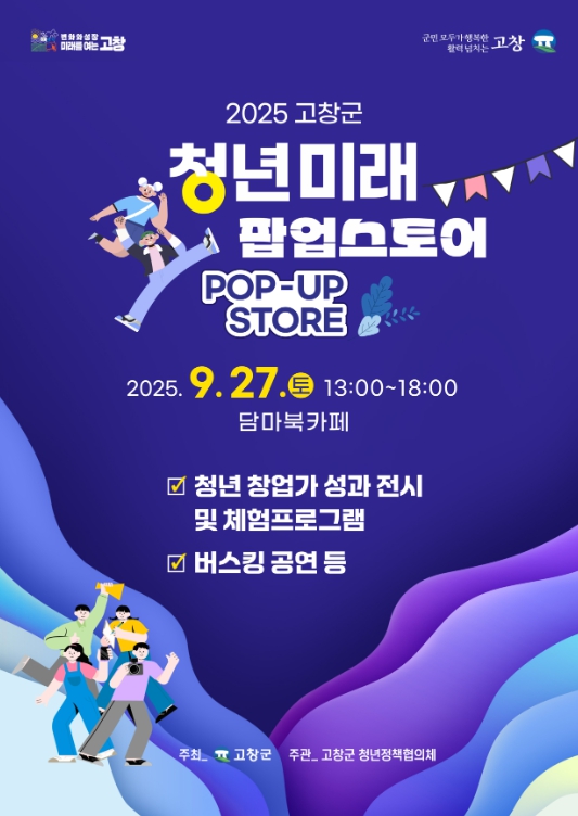 [무한뉴스=정민정 기자] 고창군은 오는 9월27일 오후 1시부터 담마북카페에서 2025 청년의 날 기념행사 ‘청년미래 팝업스토어’를 연다.