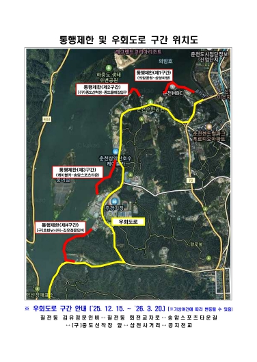 | ▲ 통행제한 및 우회도로 구간 위치도 |