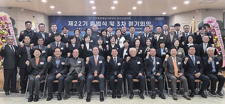 [무한뉴스=정민정 기자] 홍천군은 11월 14일, 홍천읍행정복지센터 3층 대회의실에서 ‘민주평화통일자문회의 홍천군협의회 제22기 출범식 및 제3차 정기회의’를 개최했다. 이번 출범식에는 신영재 홍천군수, 제22기 자문위원, 역대 회장 등 50여 명이 참석했다.
