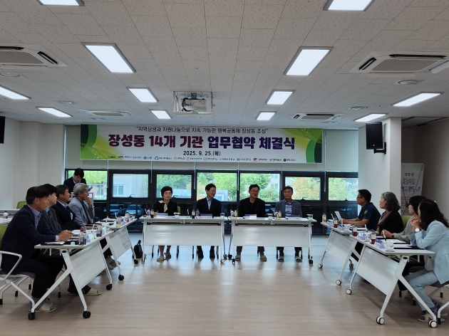 [무한뉴스=정민정 기자] 태백시시설관리공단은 지난 9월 25일 오전 11시, 장성동 생활SOC복합커뮤니티센터 2층에서 장성동 관내 14개 기관이 참여한 지역 상생과 자원 나눔을 위한 대규모 업무협약을 체결했다고 밝혔다. 장성동 소재 공공기관, 금융기관, 교육기관이 모두 참여해 지역 내 주요 기관 전체가 뜻을 모은 이례적인 사례라는 점에서 주목된다.