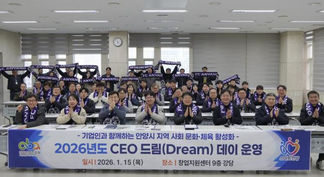 [무한뉴스=정승훈 기자] 안양산업진흥원은 15일 오후 3시30분 안양창업지원센터 강당에서 관내 기업인 150여 명을 대상으로 지역사회 문화·체육 활성화를 위한 ‘2026 CEO 드림(Dream) 데이’를 열었다.