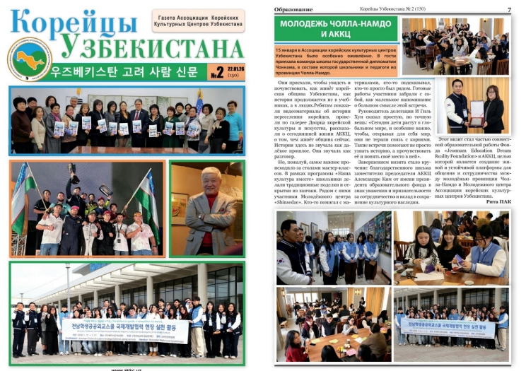 | ▲ ‘우즈베키스탄 고려 사람 신문’에 게재된 전남학생공공외교스쿨 활동 모습. |