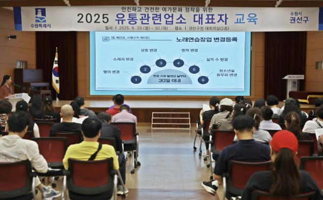 한편, 권선구는 지난 9월 5일, 이번 교육에 앞서 위반행위 반복 노래연습장 대표자를 대상으로 교육을 1회 더 진행하며 건전한 여가문화 조성을 위한 대표자 준수사항을 강조했다.