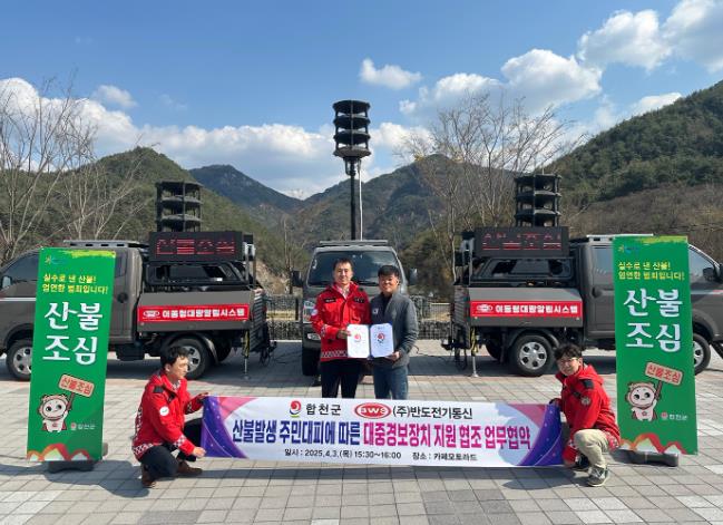 [무한뉴스=최진수 기자] 합천군과 반도전기통신이 3일 대병면 일원에서 ‘산불발생 시 주민긴급대피에 따른 이동식 대중경보장치 지원협조’를 위한 업무협약을 체결했다.