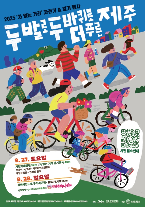 제주도는 ‘두 발로 두 바퀴로, 더 푸른 제주’를 주제로 27일부터 28일까지 이틀간 차 없는 거리 자전거&걷기 행사를 개최한다.