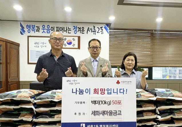 [무한뉴스=양현명 기자] 수원시 권선구 세류2동 소재 MG세화새마을금고는 지난 17일, 추석 명절을 맞이하여 취약계층을 위한 백미 10kg 50포를 세류2동 행정복지센터에 기부했다.