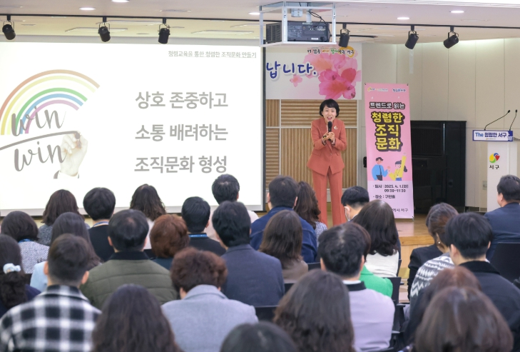 [무한뉴스=최진수 기자] 대구 서구청은 지난 1일 구청 구민홀에서 상호 존중과 소통 배려하는 청렴한 조직문화를 형성하기 위해 '2025년 상반기 청렴교육'을 실시했다고 밝혔다.