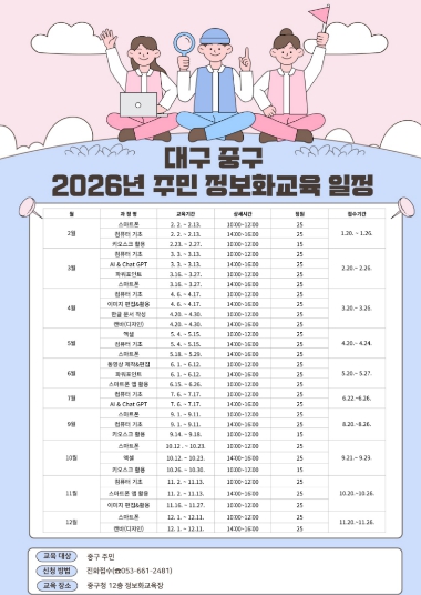 | ▲ 대구 중구, 2026년 주민정보화교육 운영… AI&ChatGPT, 캔바 과정 신설(포스터) |