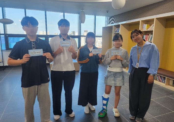 | ▲ 청소년상담복지센터를 통해 무안경찰서 후원금을 전달받은 청소년들 |