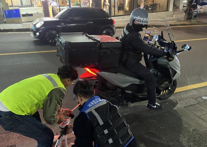 서귀포시와 교통안전공단, 자치경찰단과 서귀포경찰서로 구성된 합동단속반은 불법튜닝(안개등 임의 설치) 1건, 안전기준 위반(등화장치, 번호등 미점등) 5건, 의무보험 미가입 운행 2건 등 불법 이륜차 총 8건을 적발하고 소음점검 16건을 실시했다.