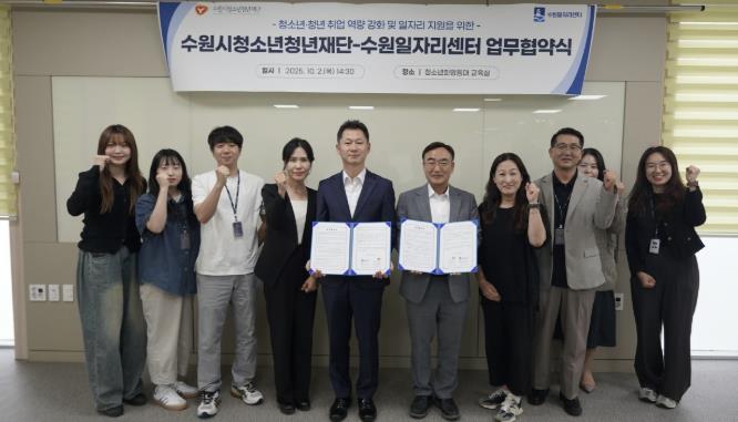 [무한뉴스=양현명 기자] 수원시청소년청년재단과 수원일자리센터는 10월 2일, 청소년청년의 취업 역량 강화와 일자리 지원을 위한 업무협약(MOU)을 체결했다.