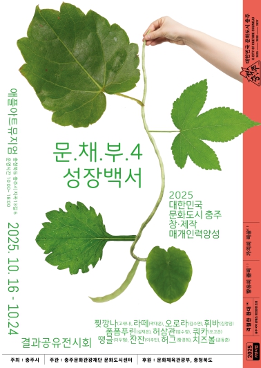 [무한뉴스=정민정 기자] 충주시와 (재)충주문화관광재단 문화도시센터는 2025 대한민국 문화도시 충주 사업의 일환으로 진행한 ·제작 매개인력 양성 '문화를 채우는 부족 4 : 성장백서'의 결과 공유 전시회를 충주시 애플아트뮤지엄(충주시 지현동 852)에서 10월 16일 15시 오픈식을 시작으로 24일까지 9일간 개최한다.