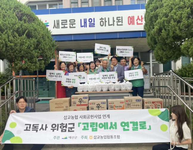 ‘고립에서 연결로’는 6개 단체 봉사단이 매월 밑반찬을 지원하고 군이 생필품 및 식료품을 마련해 제공하며, 삽교농협이 배달을 맡는 민관 협력사업이다.