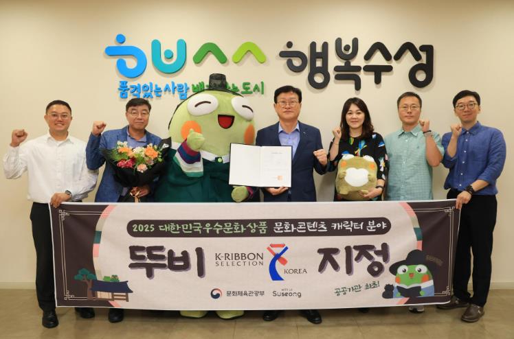 [무한뉴스=최진수 기자] 대구 수성구 캐릭터 ‘뚜비(DDUBI)’가 문화체육관광부 주최하고, 한국공예·디자인문화진흥원(KCDF)와 한국콘텐츠진흥원이 공동 주관하는 2025년 K-RIBBON(대한민국 우수문화상품) 최종 선정의 영예를 안았다.