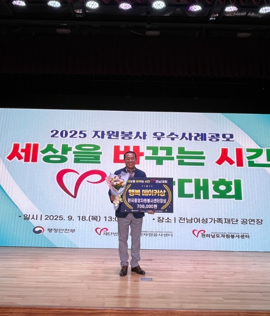 [무한뉴스=정민정 기자] 전남 무안군은 지난 18일 전남여성가족재단에서 개최된 ‘2025 세상을 바꾸는 시간V 전남대회’에서 우수상인 한국중앙자원봉사센터장상을 수상했다.