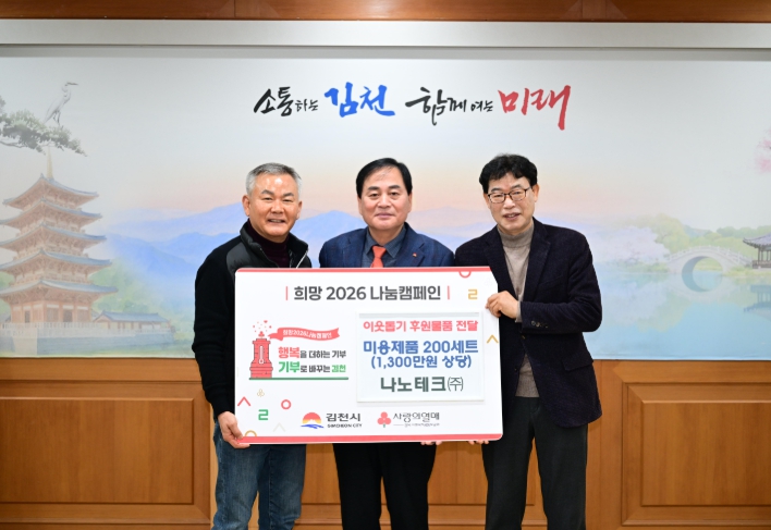 [무한뉴스=최진수 기자] 김천시는 지난 23일, 나노테크㈜(대표 김정헌)으로부터 어려운 이웃을 위한 미용 제품 200상자(1,300만 원 상당)를 전달받았다고 밝혔다.