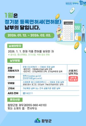 | ▲ 함양군, 1월 정기분 등록면허세(면허분) 납부 홍보 |