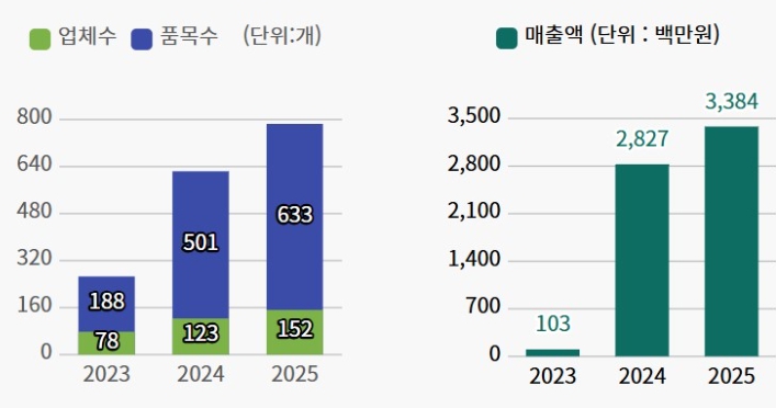 그 결과 짧은 기간 안에 쇼핑몰 입점업체 78개소에서 142개소로 확대했으며, 입점품목도 188개에서 633개 품목으로 다양화할 수 있었다.